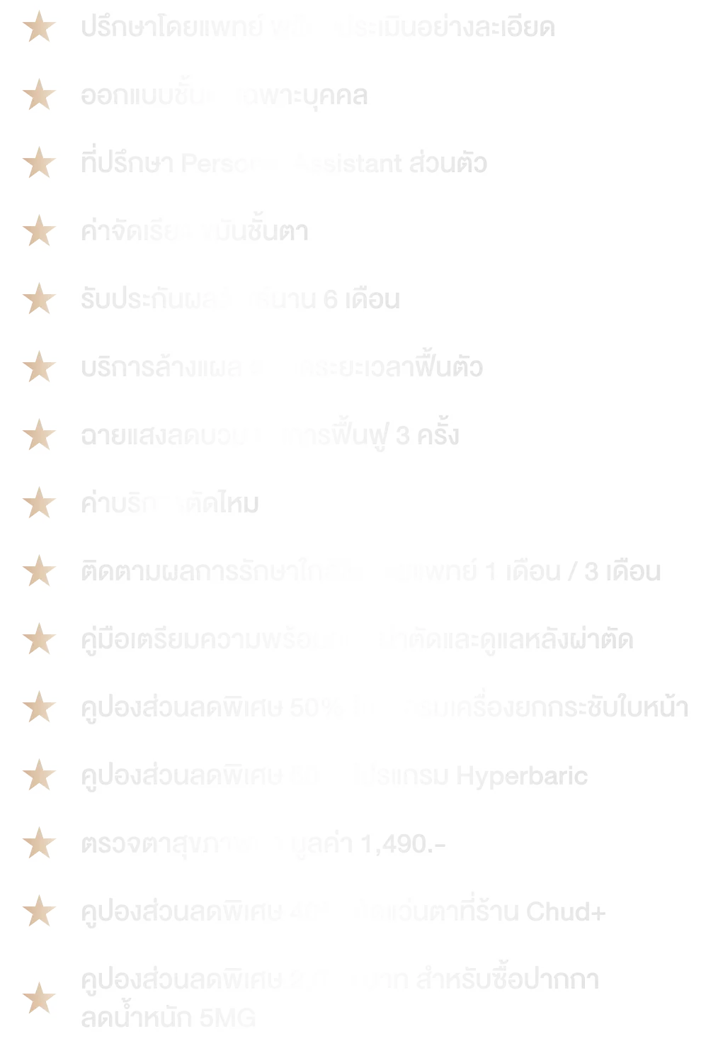 การผ่าตัดใช้เวลาประมาณ 1-2 ชั่วโมง (ขึ้นอยู่กับแต่ละบุคคล) หลังทำเรามีบริการ Aftercare ครบวงจร